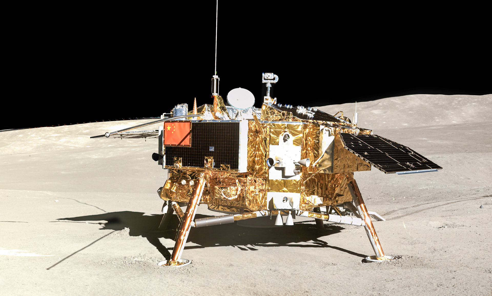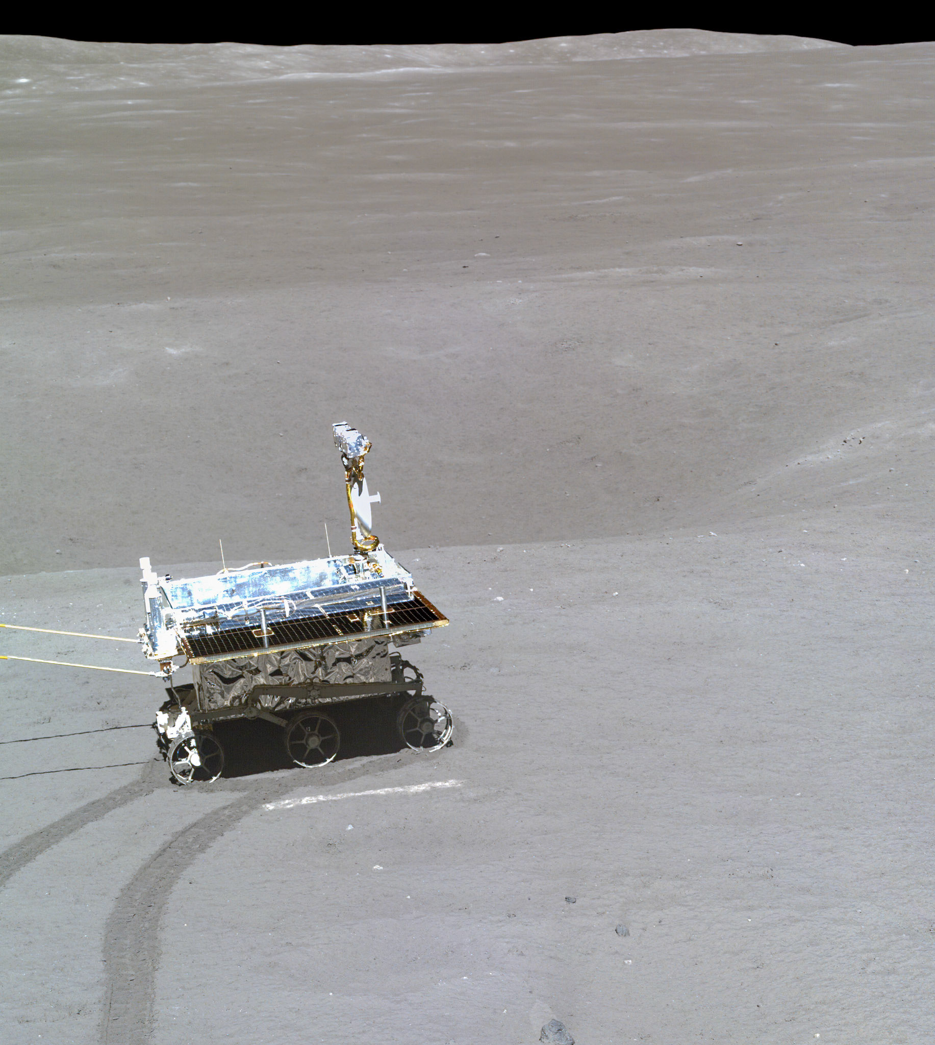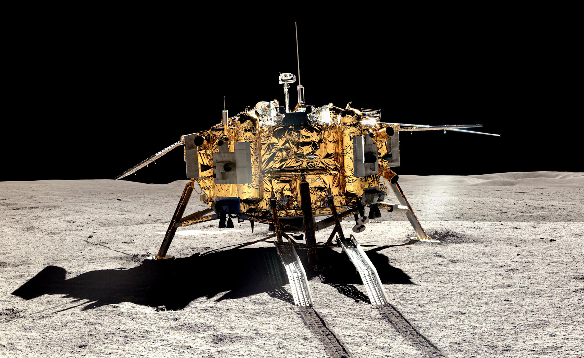 Images from the lunar surface taken by China's Chang'e-4 lander and rover.